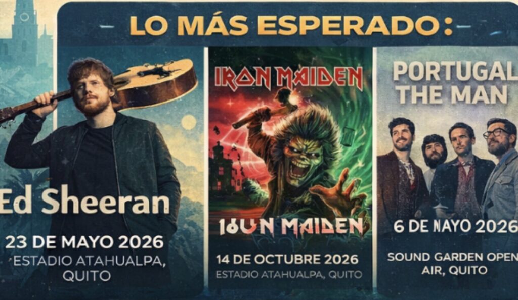 El calendario de conciertos en Quito y Guayaquil para 2026 se ha convertido en uno de los más nutridos de la región. Artistas de talla mundial como Ed Sheeran, Laura Pausini, Ricardo Arjona, Iron Maiden y Mon Laferte han confirmado presentaciones en estadios y coliseos. Estos espectáculos reflejan el crecimiento del mercado musical ecuatoriano y la consolidación del país como destino clave para giras internacionales. Los conciertos abarcan géneros como pop, rock, baladas y música urbana, ofreciendo opciones para todos los públicos. La expectativa es alta, con entradas agotándose rápidamente y un impacto económico positivo en turismo y servicios locales. La llegada de estos artistas también marca un hito cultural, ya que Ecuador se posiciona como un escenario relevante en la industria musical global.